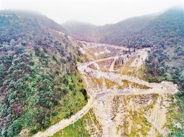 2017年12月13日,中崗村通往女兒廠藥材基地的機(jī)耕道已通車,但仍十分險(xiǎn)要。 記者 謝智強(qiáng) 攝