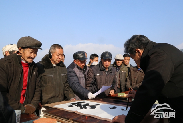 “有沒有按時吃藥?平時的生活習慣是怎樣……”現場另一頭,醫務志愿者們正仔細詢問,對癥下藥,為村民們送去了藥品。一旁縣文聯的書法愛好志愿者們提筆蘸墨,毫端過處留下丹青幅幅。根據村民們的需求,志愿者們為村民書寫了“家和萬事興”等家風家訓,拿到家訓的村民個個喜笑顏開。