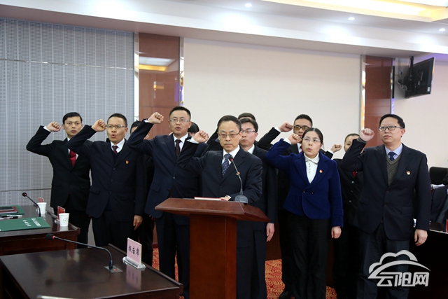 會上還進行了任前表態性發言,憲法宣誓,頒發任命書。