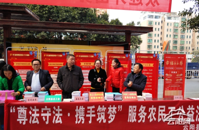 云陽網訊(記者 鄧磊 通訊員 劉穎)2月5日,由縣總工會、縣委宣傳部、縣司法局等部門聯合開展的“尊法守法·攜手筑夢”農民工公益法律服務活動正式啟動。