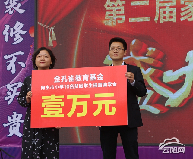 據(jù)了解,此次捐贈(zèng)儀式是由金孔雀裝飾工程有限公司負(fù)責(zé)人譚文組織社會(huì)愛心企業(yè)人士開展的,供籌集教育基金1萬元,用于水市小學(xué)10名貧困生的教育基金。