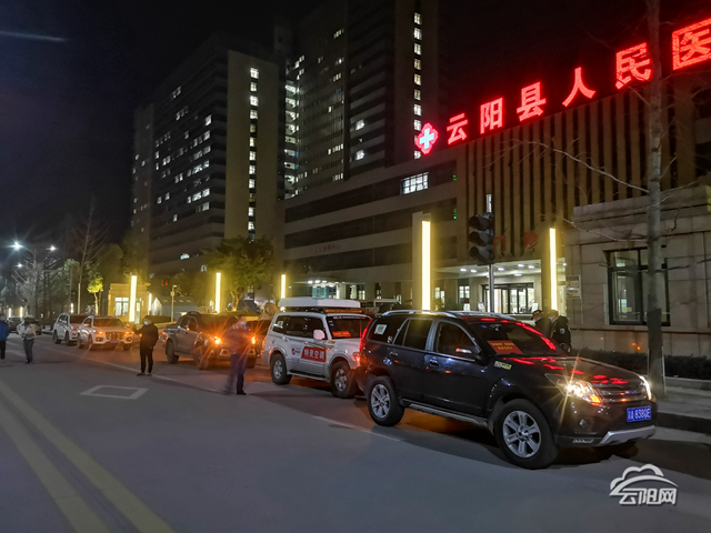晚上12點(diǎn),寂靜的街道如這場疫情一樣令人壓抑,但縣人民醫(yī)院門口一個個等待的車燈驅(qū)散了不安、寒冷,帶來了希望和期盼。
