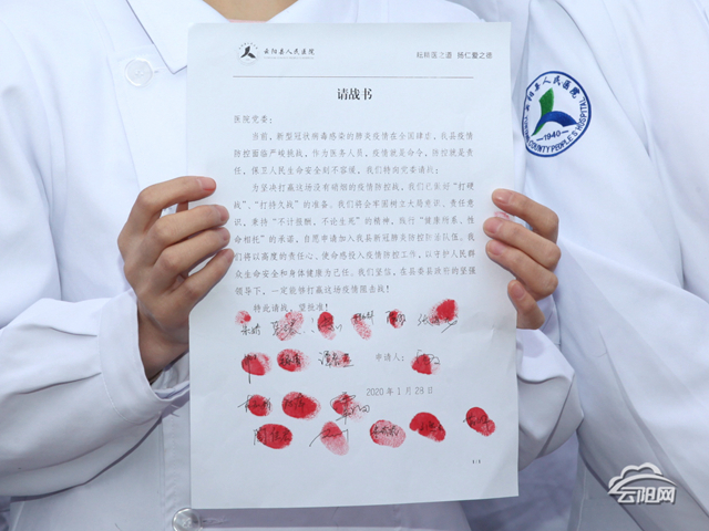 “我志愿加入云陽(yáng)縣人民醫(yī)院抗擊‘新冠肺炎’醫(yī)療救治志愿隊(duì)奔赴抗擊疫情一線,我將堅(jiān)守‘敬佑生命、救死扶傷、甘于奉獻(xiàn)、大愛無(wú)疆’的職業(yè)精神,為保障全縣人民生命安全,為奪取抗擊‘新冠肺炎’的全面勝利而努力工作!”每一名宣誓者都精神飽滿、熱血沸騰,用洪亮的聲音表明自己加入疫情防控第一線,打贏這場(chǎng)疫情防控阻擊戰(zhàn)的決心。
