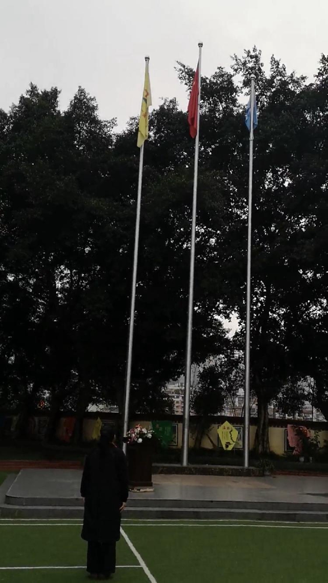 “首先,進(jìn)行升旗儀式,請(qǐng)全體肅立,奏唱國(guó)歌!”……伴隨著國(guó)歌聲,視頻里站在國(guó)旗下戴著口罩的校長(zhǎng)張吉惠淚目了。