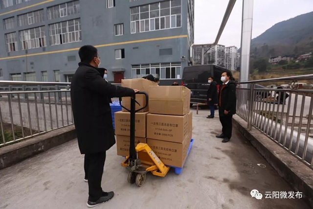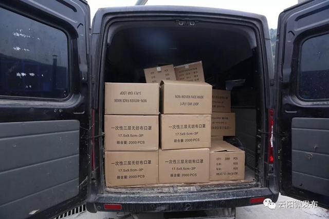 2月10日下午3點左右,上海云陽商會捐資購買的71050只口罩,由一輛運輸車運抵云陽,口罩總價值224465元。縣工商聯代表家鄉人民對商會表示感謝,隨后將這批物資交由縣經信委統一調度。