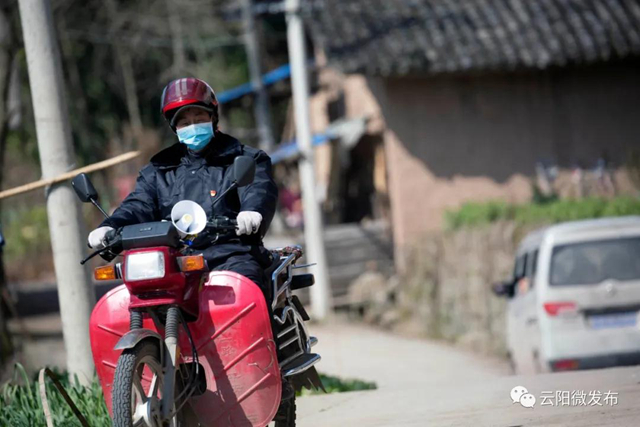 1月29日,云陽雙土鎮(zhèn)吉星村。盡管已是初春,陽光明媚,但受新冠肺炎疫情影響,大多數(shù)群眾都閑在家里,或在家門口沐浴著春日陽光。不過,這里卻有一個騎著摩托車的忙碌身影,穿行于村中大道小路。摩托車上綁著的一只小喇叭循環(huán)播放著疫情防控知識和勸誡之語:“今天不外出,是為了早日能出門;今天不串門,是為了明天能走動;今天不扎堆,是為了他日能團聚;今天不聚餐,是為來日能暢飲……”