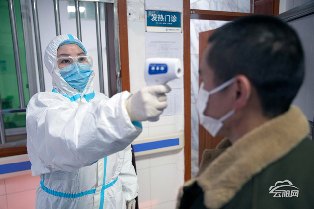 “進(jìn)出人員我都要給他們一‘槍’,不放過任何一個人。預(yù)檢分診是把控患者的第一道關(guān)口,一旦漏掉,將會感染更多的人,這個崗位十分重要。”2月20日,高陽鎮(zhèn)衛(wèi)生院護(hù)士長、預(yù)檢分診負(fù)責(zé)人付冬英,穿著防護(hù)服一邊開玩笑,一邊一絲不茍地在衛(wèi)生院大門口測量每個人的體溫,一刻也沒有停歇,守護(hù)好第一道“防護(hù)大門”。