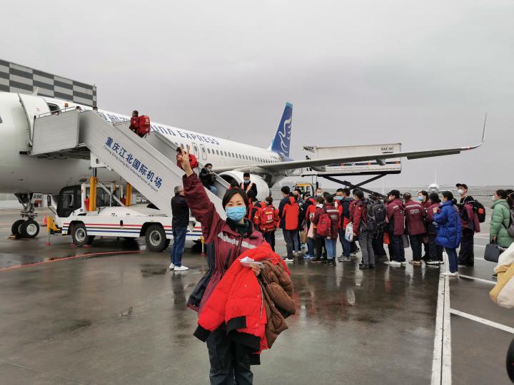 出征時,王玉佳準備登機。受訪者供圖 華龍網-新重慶客戶端發