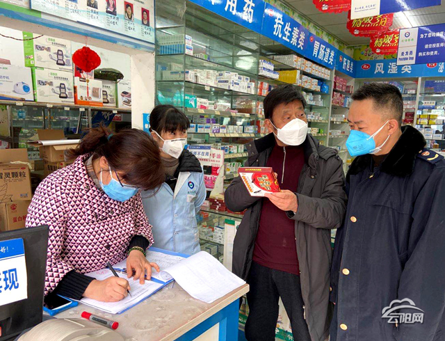 “你們一定要好好配合,相關藥品要嚴格下架,同時要對來購藥的市民做好正確解釋。”2月12日,我縣發布了《關于全縣零售藥店暫停銷售發熱、咳嗽類藥品的緊急通告》,通告指出,自2月13日起,全縣零售藥店暫停銷售發熱、咳嗽類藥品。為了確保防疫工作落實到位,2月10日起,縣市場監管局就已對城區內490家零售藥店發放了500份宣傳資料,督促藥店嚴格落實通告要求,及時下架存封相關藥品,形成登記臺賬。同時組織工作人員每天巡防檢查,加大檢查力度。