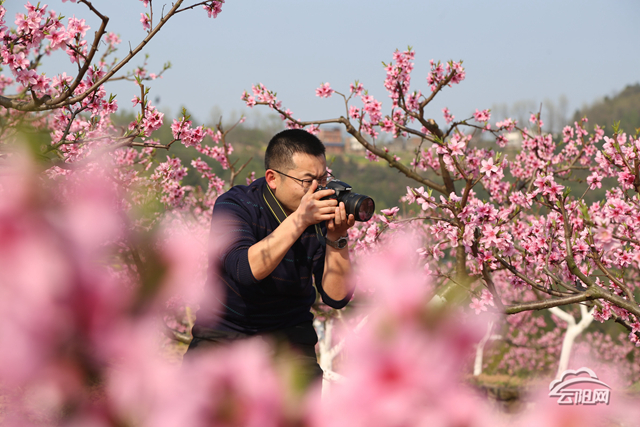 桃林深處,游客徜徉在花下,或賞花拍照,或靜聽鳥鳴,釋放壓力,享受休閑,沉醉在溫柔的春光里。