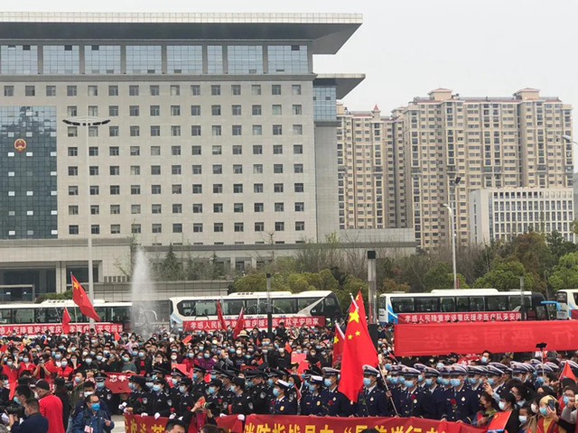 當他們離開時,湖北省孝感市以最高禮遇護送醫療隊員們,送別援孝勇士!