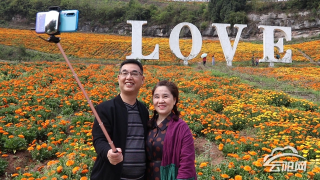 走進(jìn)花千谷,映入眼簾的是正處盛花期的金盞菊,山坡、田野被成片的花朵裝扮得花團(tuán)錦簇。清新的嫩黃、熱烈的金黃,深淺交融,層次分明,如多彩錦緞,似流云璃彩,盡顯春日浪漫?;ㄌ镄嚼铮慰蛡冡溽嘤诨êV?,或閑散踱步,或聞香識(shí)花,不時(shí)還定格下美好瞬間,春光大美,每個(gè)人都流連忘返。除了本地市民外,還有不少來自萬州、開州的游客。萬州游客黃河和妻子一起慕名而來?!按号ㄩ_,草長鶯飛的時(shí)節(jié),我們專程從萬州來云陽花千谷玩,一路上都是美麗的風(fēng)光,給我們留下了深刻的印象?!庇慰忘S河表示。