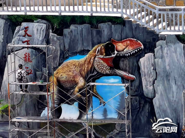 兇猛的恐龍沖出洞穴咆哮,湍急的瀑布落下萬丈深淵……記者在施工現場看到,整個項目的主體部分已經完成,地面和墻面上的3D彩繪已具雛形,栩栩如生,配合上周圍優美的自然環境,藝術和自然在這里完美融合。與此同時,工人們正在緊鑼旗鼓地進行細節部分的繪畫,完成最后的收尾工作。據了解,墻繪團隊自2月28日進場以來,克服疫情影響加班加點進行繪畫工作,目前正在進行細節處理和不同視點的美化工作,有望提前完工,預計本月20日左右完工。
