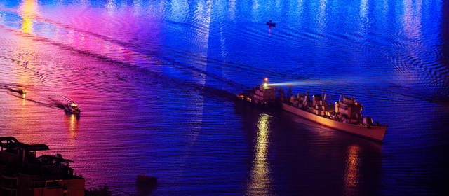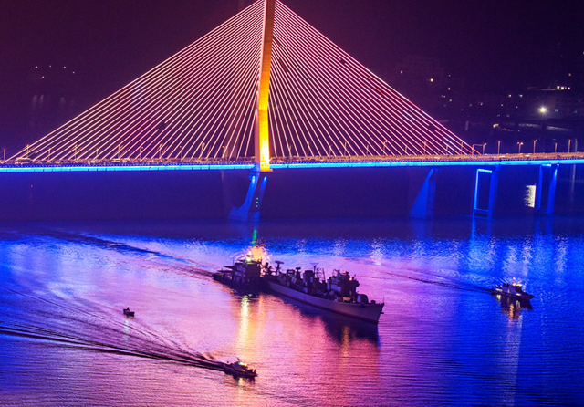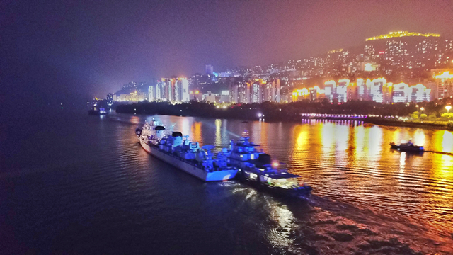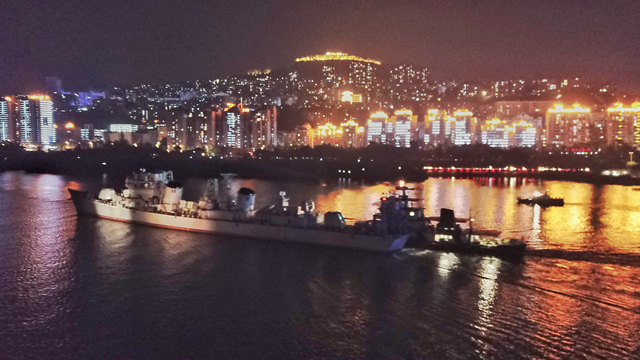 10月18日21時18分,珠海號驅逐艦過境云陽。