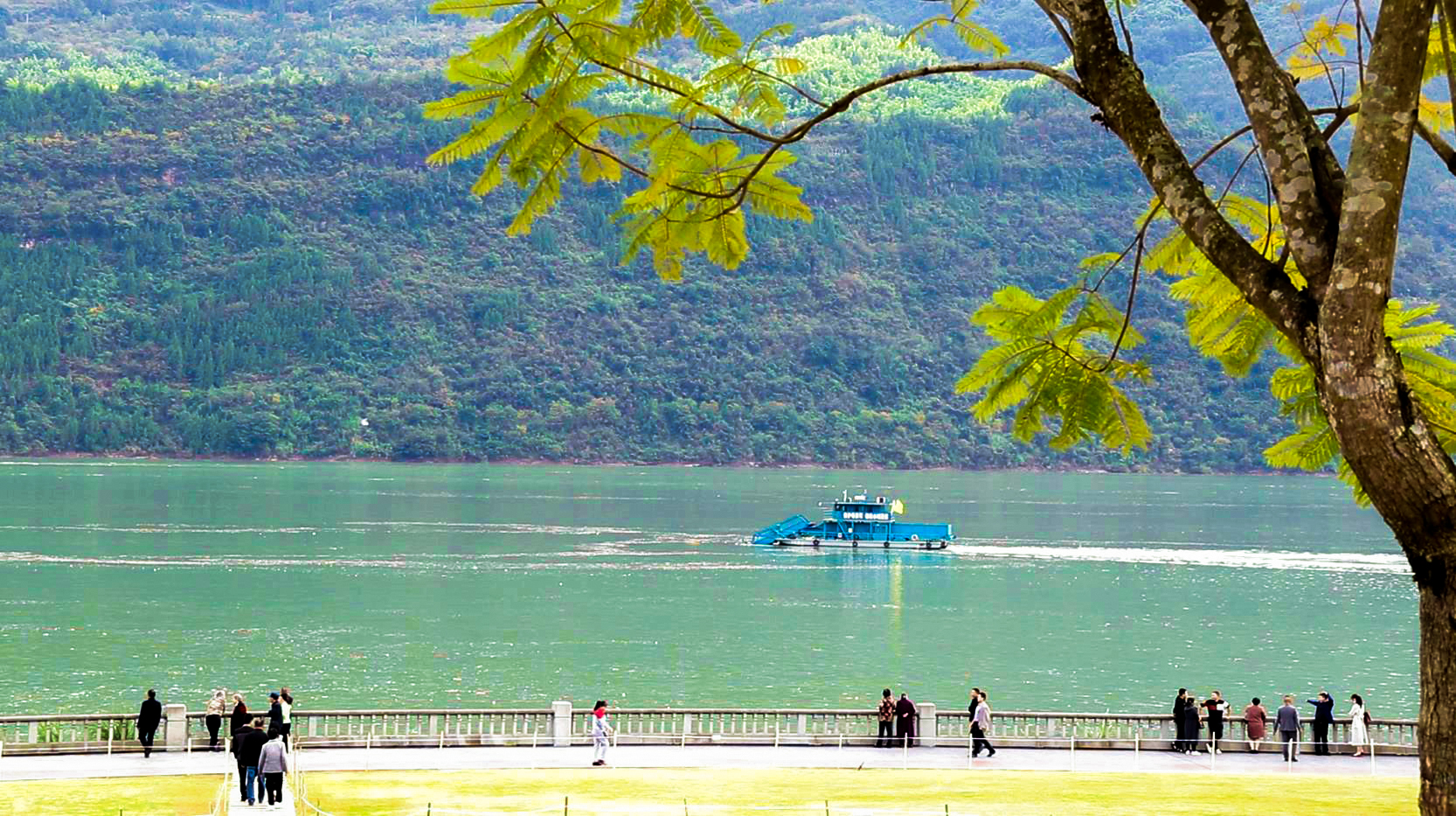 來到長江之濱,從空中俯瞰,江與城、山與水相映增輝,美不勝收。在月光草坪親水步道,市民三五成群,信步游湖。伴著蕩漾的碧波,一艘艘輪船緩緩駛過,仿佛船在江中行,人在畫中游; 在怪石林立的“宇宙星座”節(jié)點(diǎn),人們坐在大石上看江看船,或是拍張留影,各得其樂。 “第一次來云陽看到蓄水,山美、 水美,風(fēng)景特別好,視野很開闊。感覺特別棒,我還會(huì)再來。”外地游客石女士贊嘆道。
