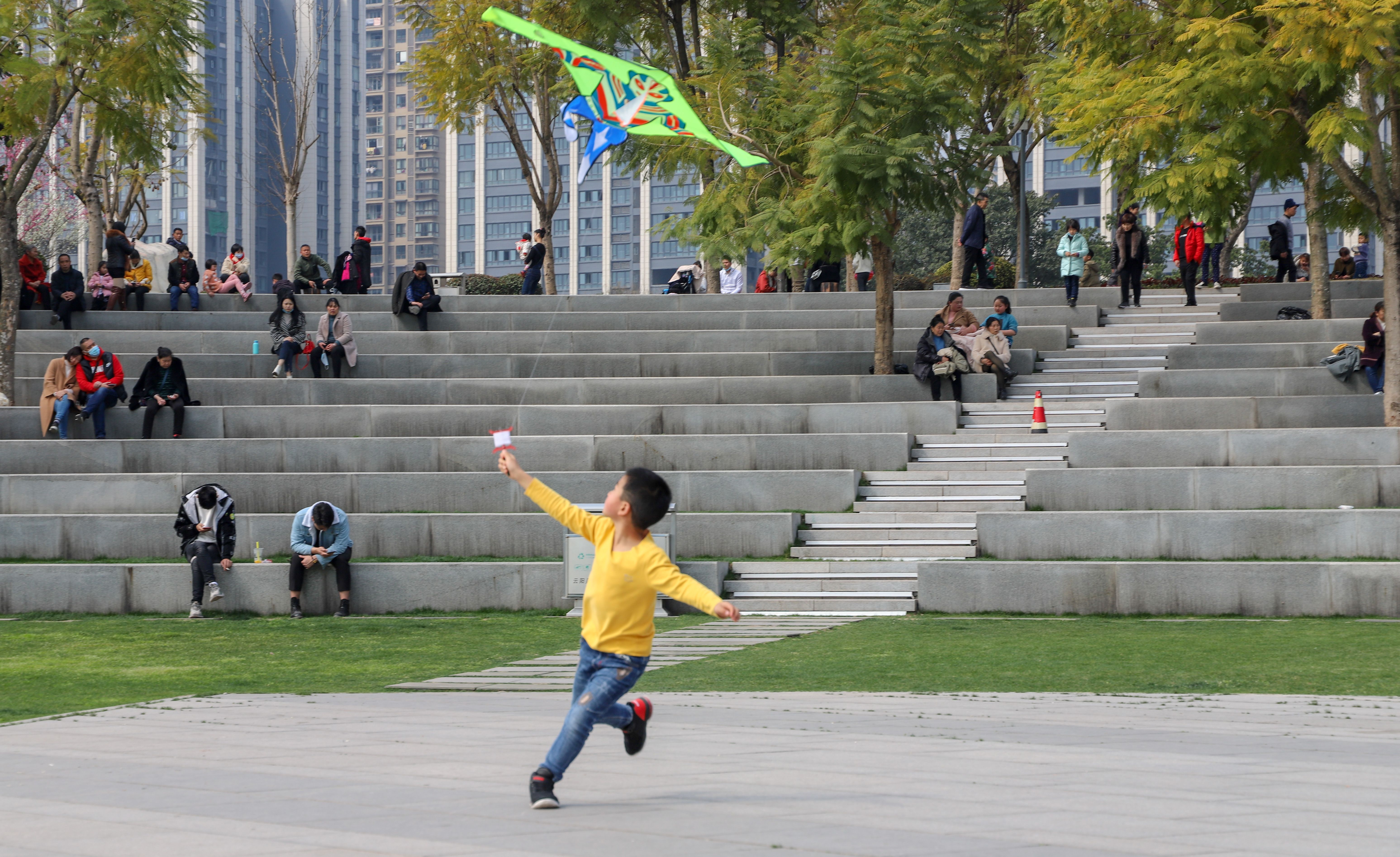 在四方井公園,次第盛開的紅梅為古樸懷舊的農(nóng)家院落描繪著春色。花前樹下的環(huán)湖綠道上,人們賞景拍照,暢快騎行,放飛紙鳶,盡情享受春光。