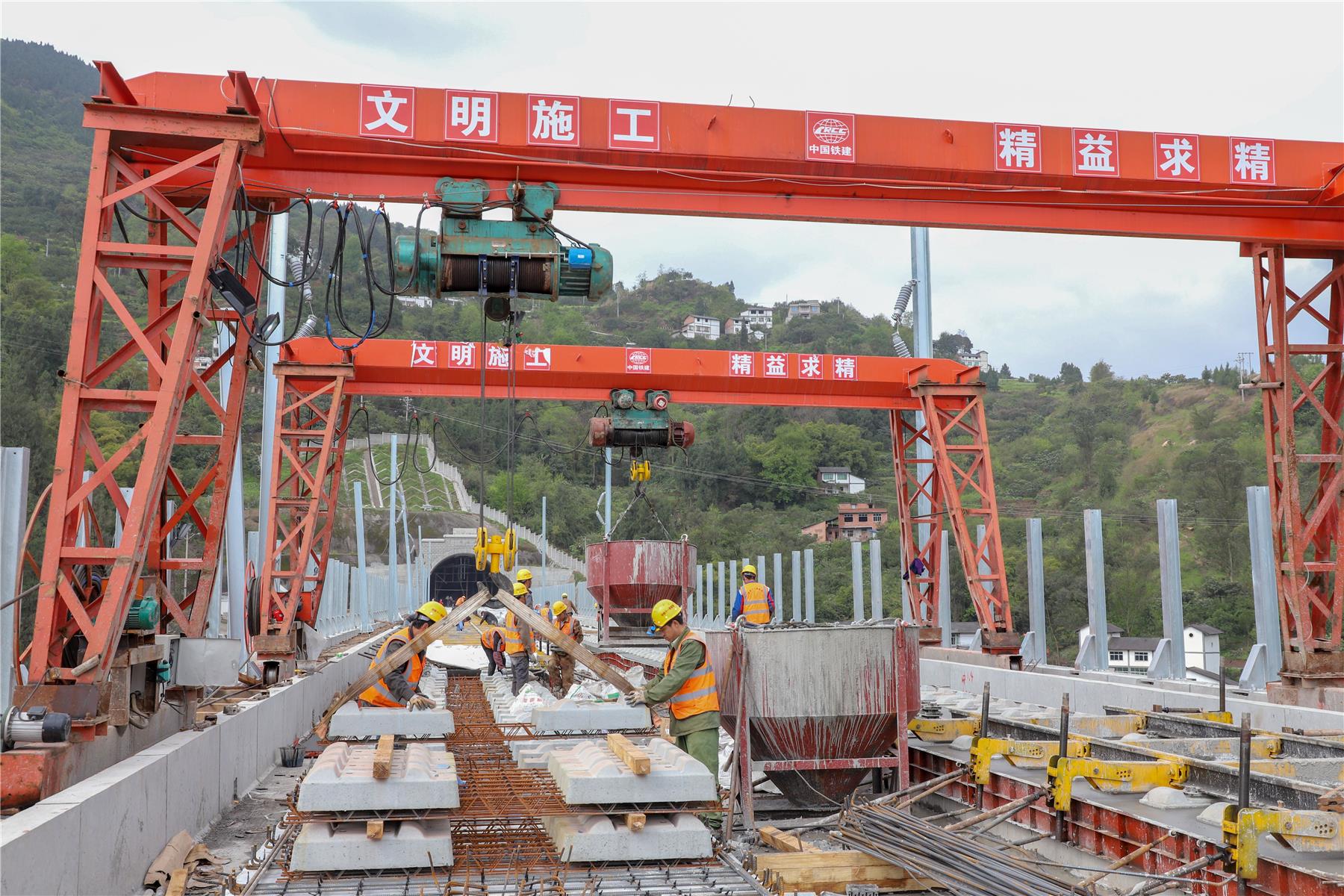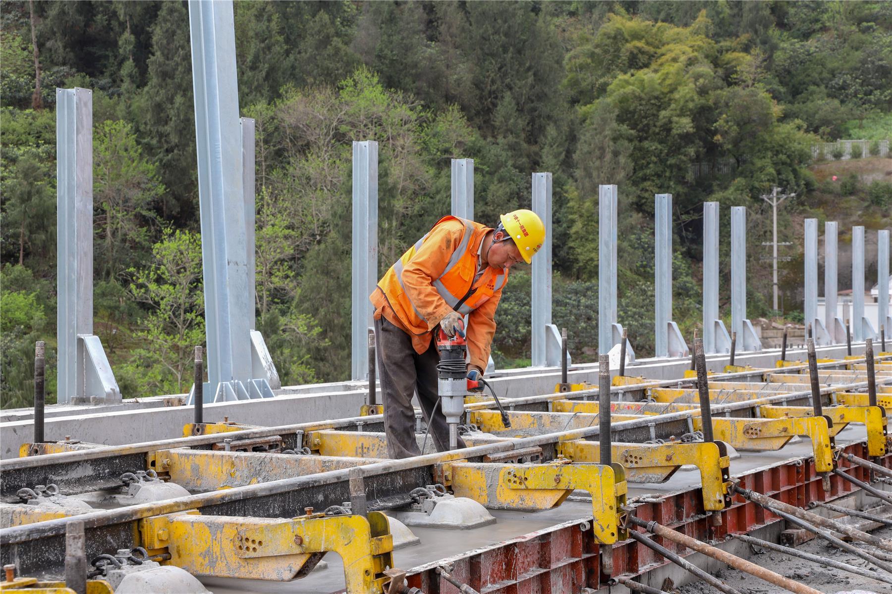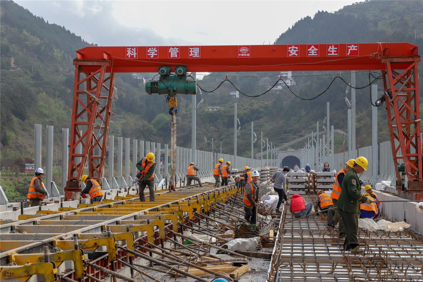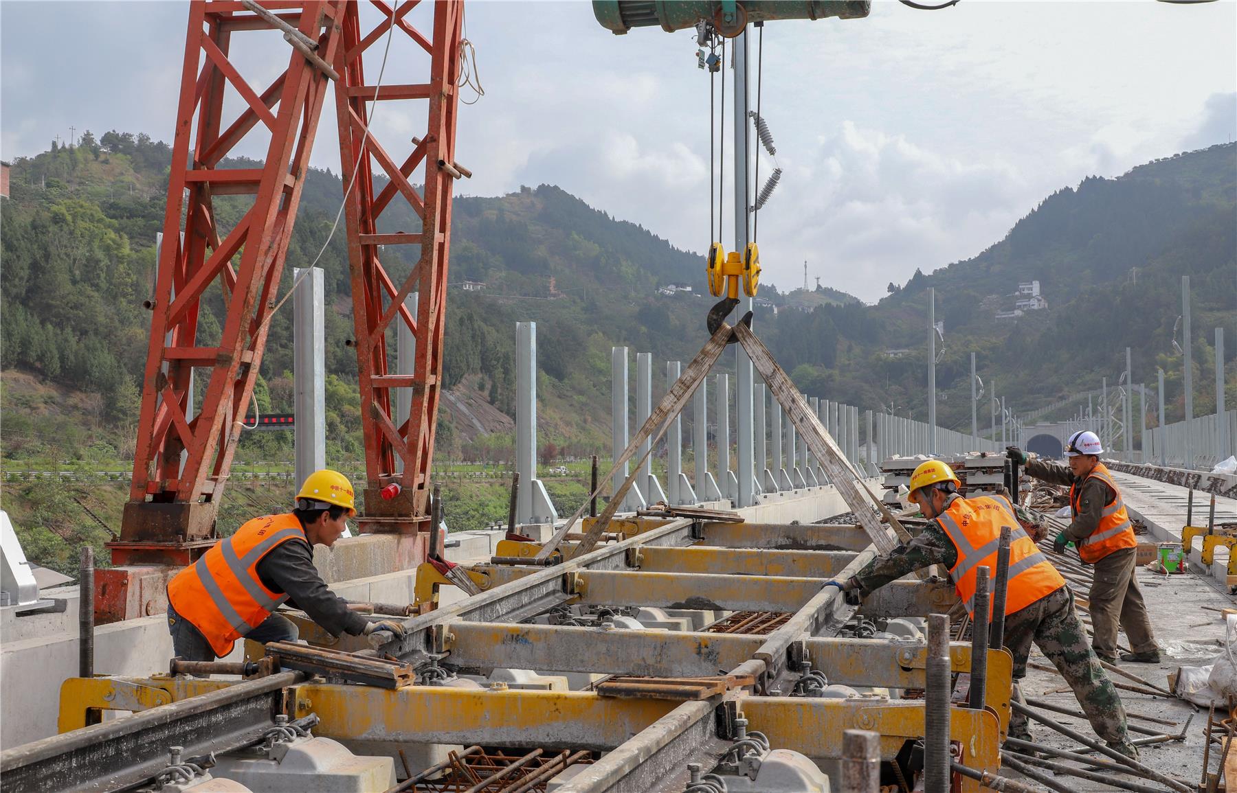 3月22日,鄭萬高鐵云陽段巴陽雙線特大橋和澎溪河多線特大橋等地,工人師傅正在緊張有序進行混凝土澆筑、鋼筋綁扎、軌枕安裝等鋪軌前期準備工作,施工現場呈現出一片熱火朝天、大干快上的忙碌景象。