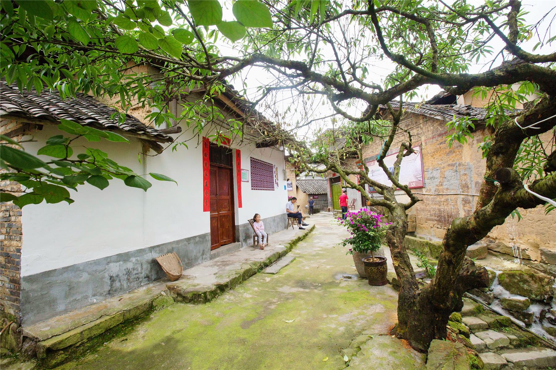 走進云安鎮土地坳,隨處可見門前貼上的對聯,家家門前種上了鮮花,青石板小道干凈整潔,蓑衣、斗笠等富有傳統文化內涵的物品掛在顯眼處。“人人學雷鋒,處處講公德,家家樹新風,村村更和諧”“和睦可生財,勤勞能致富”……這些都是土地坳的真實寫照。云安鎮通過政府引導,村組帶頭,群眾參與,持續推進人居環境整治,在社區內繪制了精美的文化長廊,通過美化、綠化和亮化,整個社區成了一個名副其實的美麗鄉村。