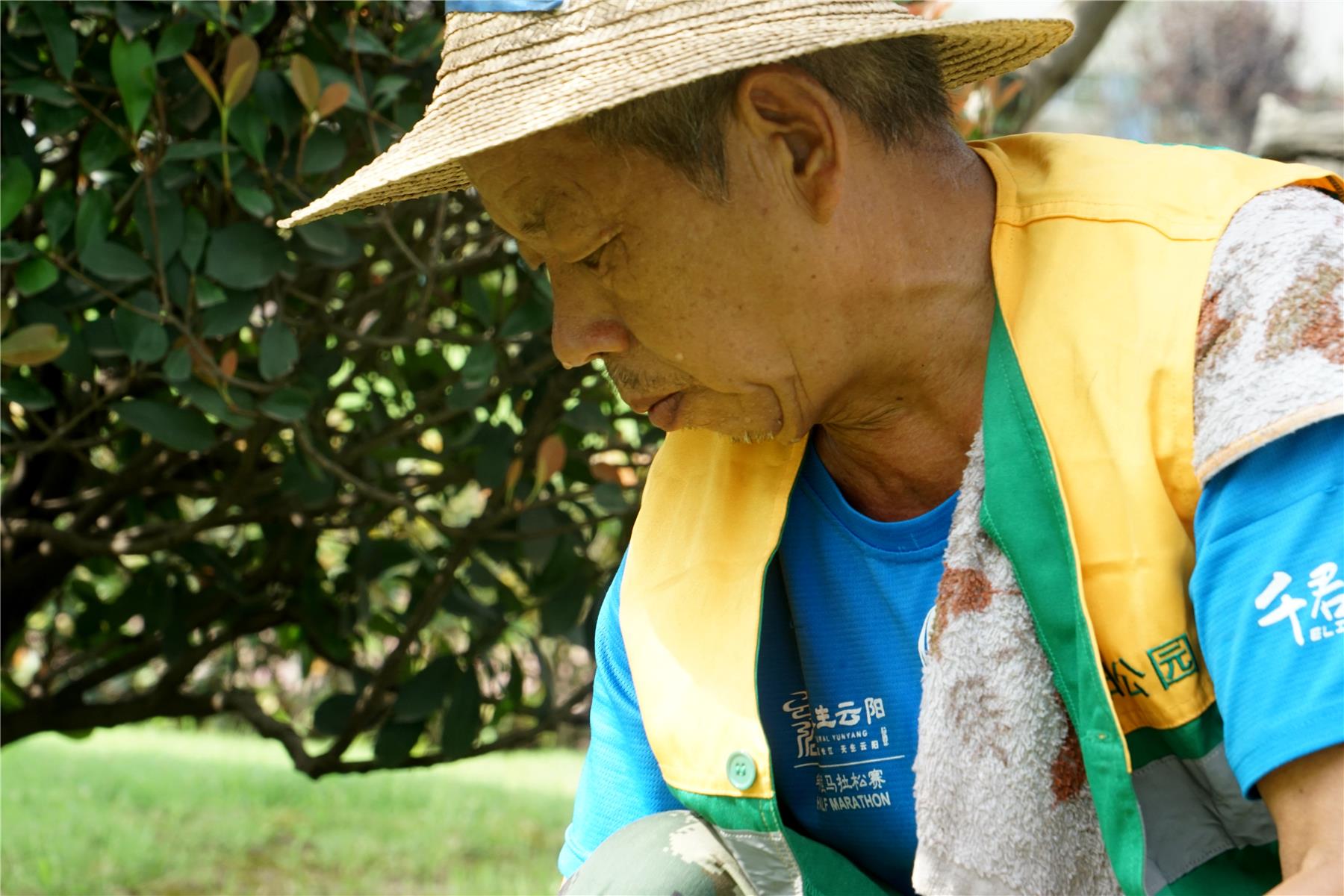 7月20日下午3點,在亮得晃眼的烈日下,月光草坪附近一臺除草設(shè)備“隆隆”作響,近50歲的王成剛熟練地拿著工具,不停地修剪灌木、除雜草。他給綠植噴撒農(nóng)藥,臉頰上的汗珠也跟著大顆大顆地往下滴,淡藍色的短袖和搭在肩上的毛巾早已被汗水侵濕。