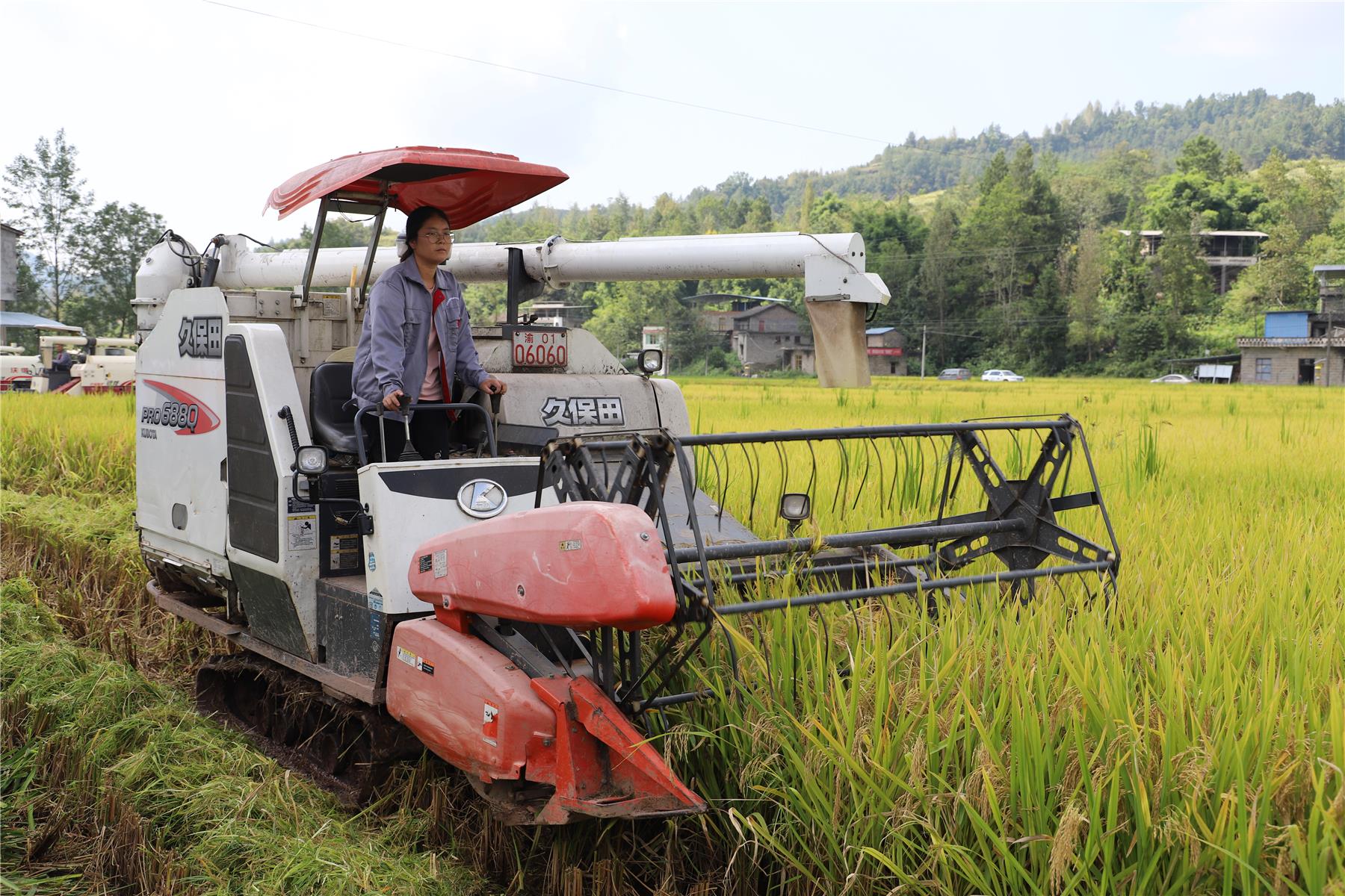 機(jī)收隊(duì)里,一位女駕駛員格外引人注目。她叫何小紅,是一名90后。她不僅是機(jī)收隊(duì)里唯一的“女將”,還是鎮(zhèn)里水稻種植專業(yè)合作社和農(nóng)機(jī)專業(yè)合作社的負(fù)責(zé)人。“脫粒的這個(gè)滑桿,男生一只手就可以扳過去,而我得兩只手才行。”盡管農(nóng)機(jī)上部分檔桿對(duì)于女生略顯費(fèi)力,但收起稻谷來,何小紅的效率卻絲毫不輸其他人。