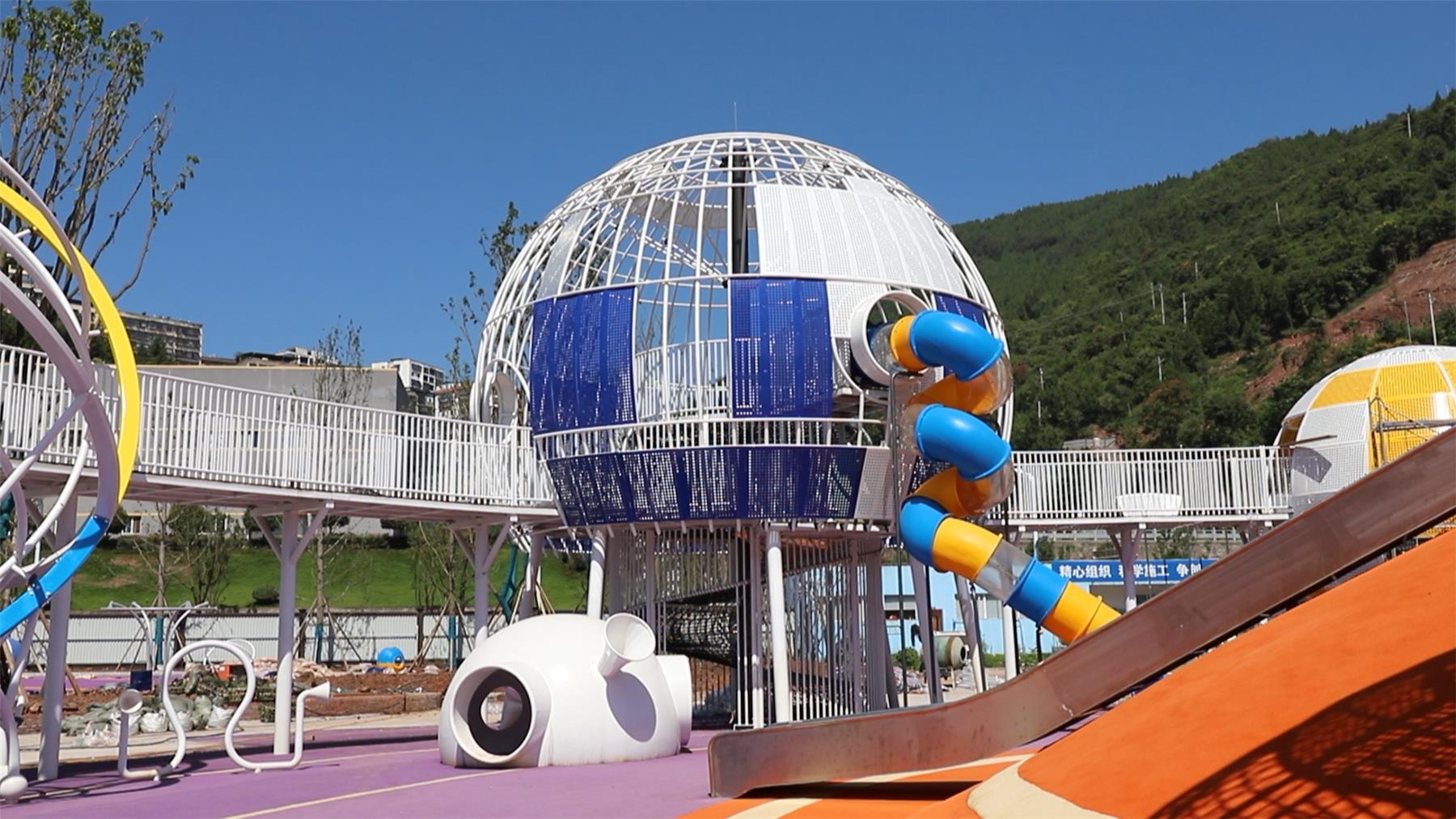 彩云陽光兒童公園是福星公園的重要組成部分,總占地面積約150畝,分為紅、紫、橙、綠、黃、藍、靛7個色彩主題區,由海、陸、空三大主題功能結構組成,設施豐富、空間多樣,能滿足0~12歲全年齡段兒童活動需求,是云陽首個以科技星空、自然森林、濱水休閑三大功能為主題的大型兒童公園,園內排列錯落有致,其景觀選用春、夏、秋、冬各一景。該公園的建成,填補了云陽大型兒童公園的空缺,為市民提供了一個闔家游玩,休閑娛樂的好去處。