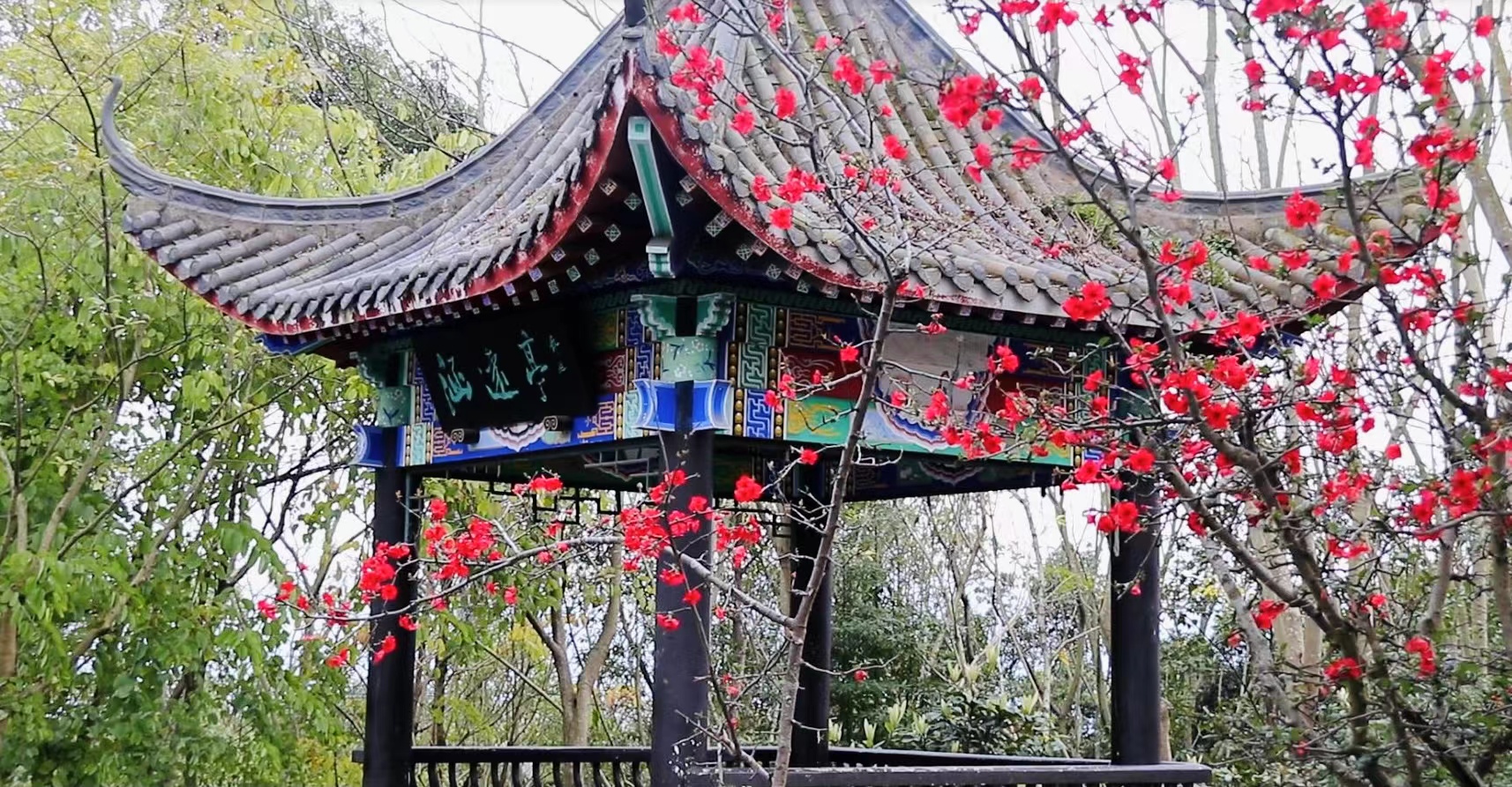 走進云頂公園,只見一抹抹新紅映入眼簾,滿樹的海棠開得絢麗熱烈,色如胭脂,美似霞暈。在公園的亭臺樓閣間,嬌俏的花枝不時探出飛檐翹角,勾勒出梯城的古韻和風雅。