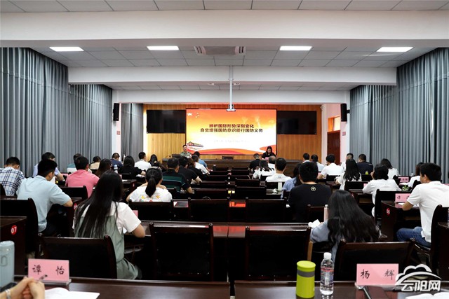 當(dāng)天,肖霄以《辨析國際形勢深刻變化 自覺增強(qiáng)國防意識 履行國防義務(wù)》為題,結(jié)合當(dāng)前國際熱點(diǎn)事件和黨史軍史、國防法律法規(guī)相關(guān)知識,從理論到實(shí)踐、從國際到國內(nèi)、從過去到現(xiàn)在,深入分析了當(dāng)前國際形勢對加強(qiáng)國防建設(shè)維護(hù)國家安全的重要啟示,及強(qiáng)化國家總體安全觀、自覺增強(qiáng)國防意識、主動履行法定職責(zé)的重要性。