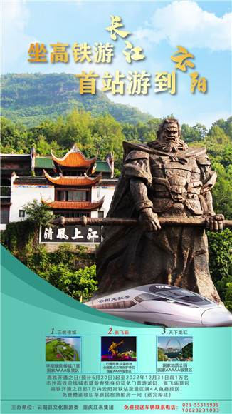 2.高鐵開通之日起7日內,免費對象憑身份證可免費乘坐云陽高鐵站-張飛廟景區-龍缸景區直通車;