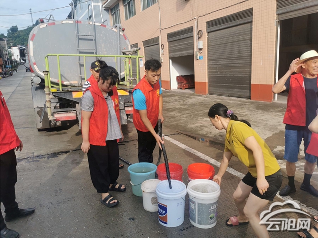8月16日上午,雙龍鎮應急抗旱流動供水車來到雙河社區集中安置點,為吃水困難的群眾送來飲用水,志愿服務隊組織群眾提前準備好水桶、水缸,解釋停水原因,并安撫群眾情緒。剛接滿水的居民贊揚道:“真的很感謝這些好干部、感謝黨委政府,要不是你們送水,我們連水都用不起了!”一桶桶甘泉,一張張笑臉,一抹抹“志愿紅”成為一道靚麗的風景線。