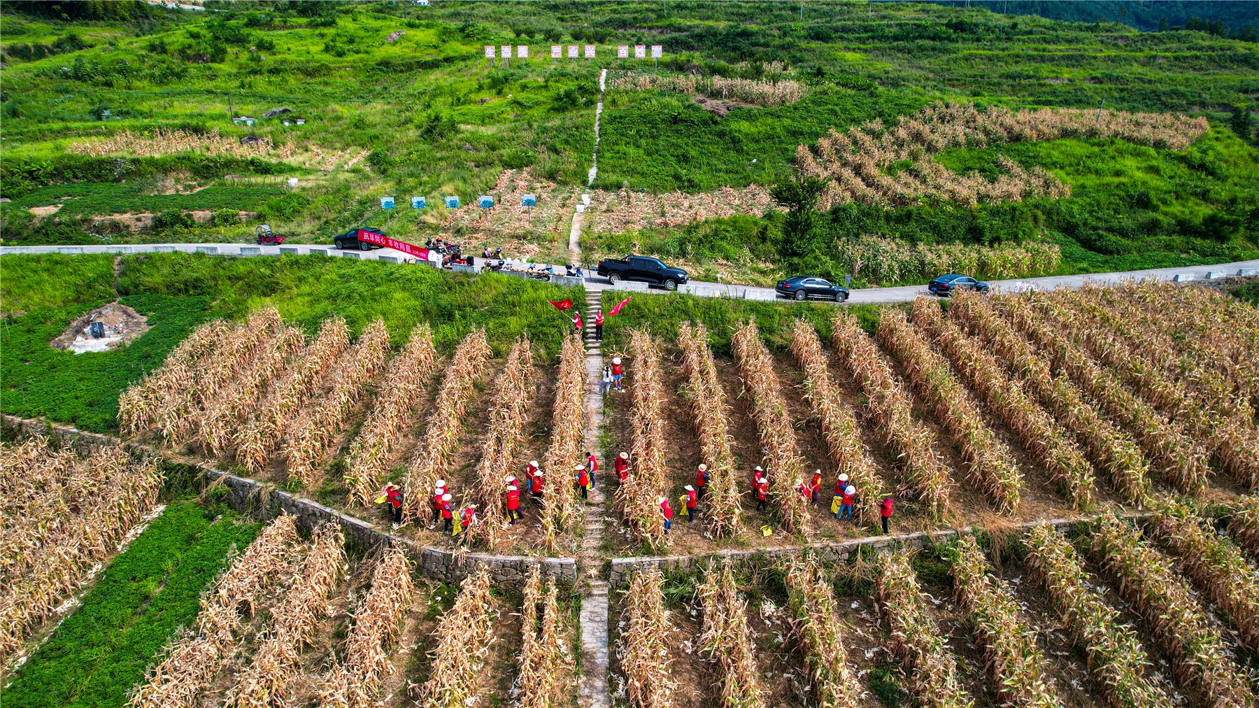 機械難進地,黨員來幫忙。在江口鎮向家坪社區大豆玉米帶狀復合種植基地,由于行間窄,不適宜收割機作業。江口鎮黨委政府了解到這一情況后,立即組織20余名黨員干部來到基地里,幫助群眾搶收玉米。一支支“黨員先鋒隊”穿梭在田間地頭,在一望無際的金色田野里,所到之處都是搶收的忙碌景象、豐收在望的喜人景象。