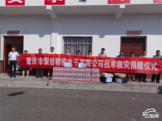 云陽網訊 (通訊員 易守菊 ) 8月23日下午,重慶市聚信精密電子有限公司組織相關人員,冒著酷暑,前往水口鎮棗子村開展抗旱救災關愛慰問活動,并為棗子村送上軟水管400米,礦泉水20件。