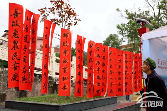 當(dāng)天,還舉行了“我們的豐收景象”主題攝影展、“禮遇金秋 書寫云陽”主題書法贈寫活動等。在書法贈寫活動現(xiàn)場,幾名縣書法家協(xié)會會員現(xiàn)場揮毫潑墨,將心底的美好祝愿化作一張張寓意豐收喜慶的書法作品,免費贈送給現(xiàn)場群眾。