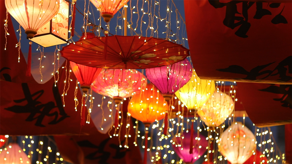 夜幕降臨,城市的夜逐漸變得絢麗多姿、風情萬種。從夜空俯瞰,萬家燈火與一個個充滿國潮風的小燈籠和閃亮的五角星交相輝映,在體現(xiàn)傳統(tǒng)文化魅力的同時,也烘托出濃濃的年味。而穿行其間,猶如置身于華燈如晝的畫卷之中。
