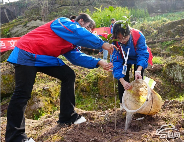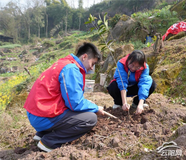 云陽網訊(通訊員 何浩 劉前旭)3月11日,初一中組織師生開展以“弘揚綠色文化 共建美麗家園”為主題的植樹節實踐活動。