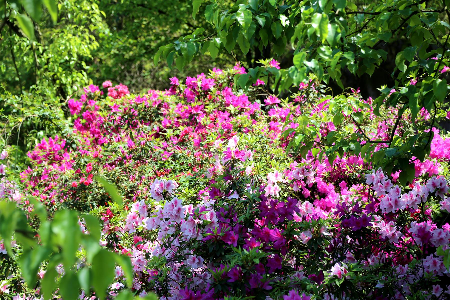 走進梨園路,便與漫山春色撞個滿懷,仿若置身杜鵑花海之中。放眼望去,各色杜鵑擠擠挨挨地開著,紅的熱烈、白的清新、粉的淡雅、紫的浪漫......一團團、一簇簇,絢麗多彩,如云似霞,宛若大自然打翻了調色盤。