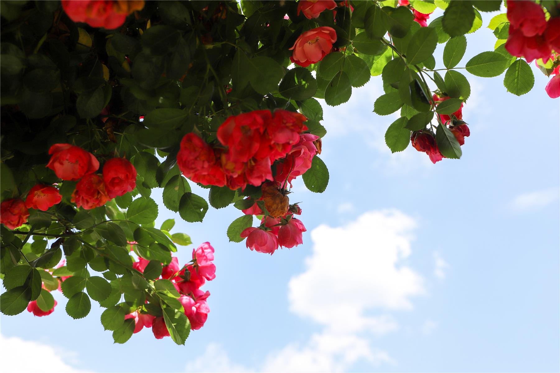 在吉慶村田園綜合體景區內,只見朵朵薔薇花開得正艷,微風拂過,好似一抹粉色的花海,大紅、粉紅的花朵在枝頭爭奇斗艷,綠葉蔥蘢,枝蔓垂掛,與藍天、白云、村舍相映成趣,小徑旁,一簇簇薔薇花隨風搖曳,美不勝收,吸引不少村民駐足觀賞、拍照留念。