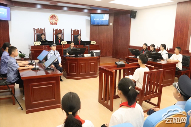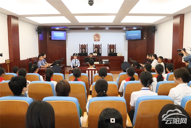 云陽網訊(記者 洪琳 劉婷)5月28日,我縣首個小學校區內的標準化模擬法庭——“陽光天平”模擬法庭在縣實驗小學揭牌。該模擬法庭是青少年法治宣傳教育重要陣地,也是縣人民法院不斷探索創新青少年法治宣傳教育方式,努力實現對未成年人權益的全方位保護的重要舉措。