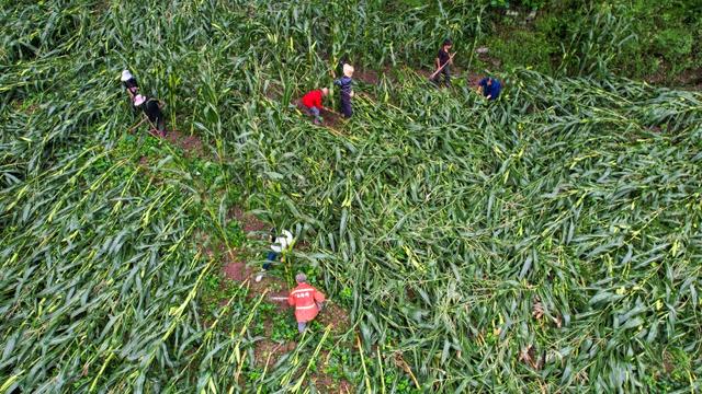 ▲強(qiáng)對(duì)流天氣造成云陽(yáng)縣江口、南溪、魚(yú)泉、平安等16個(gè)鄉(xiāng)鎮(zhèn)(街道)的玉米作物都受到了不同程度的影響。云陽(yáng)縣江口鎮(zhèn)黨員干部幫助村民開(kāi)展生產(chǎn)自救。 云陽(yáng)縣委組織部供圖