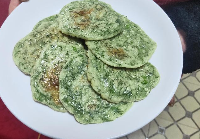 茴香嫩葉與糧食一并打磨,做成漿水后發酵,冷水加熱上鍋蒸制而成,顏色好,味道清香,一般在端午節前蒸制,也稱端午粑;還有一種做法是加面粉做成面餅,包上餡料,最有特色的就是放入臘肉,是堰坪民間一種獨特的名小吃,一般用來招待嘉賓或者貴客。