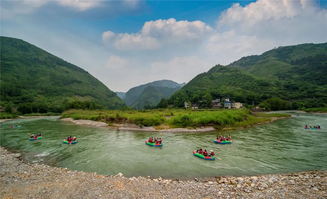 長灘河漂流全長約12公里,其間石筍河、老鴉峽、黃陵峽景點眾多,具有險、奇、怪等特點,兩岸峭壁如削,崖壁上溶洞密布,時有麋鹿、黃羊、青麂活躍其間,景色十分迷人。