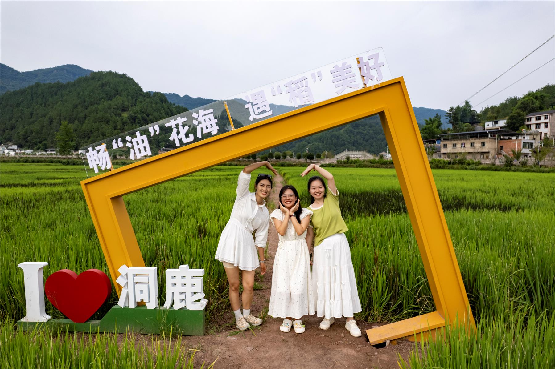 該鄉巧妙利用洞鹿壩景區在千余畝平整的稻田上做文章,每年在“天生云陽”大背景下,突出“生態洞鹿”“鄉村振興”“和美鄉村”“水源之鄉—洞鹿”等不同的主題,打造成“五彩稻田”和“五彩油菜”兩個不同季節的巨幅畫面,吸引更多游客前來觀光打卡。