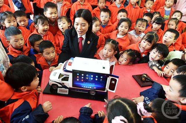 “車載便民法庭”功能啟動觀摩環(huán)節(jié),幼兒園的娃娃們對“車載便民法庭”非常感興趣。