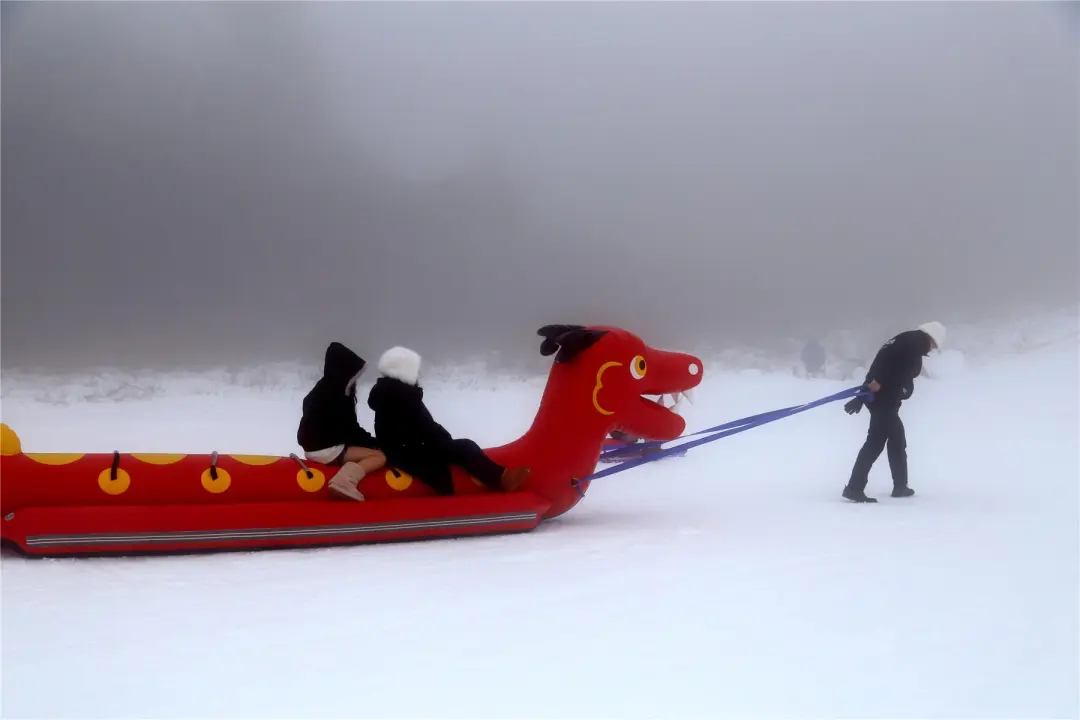 此外,滑雪場還主打戲雪項目,木質(zhì)爬犁