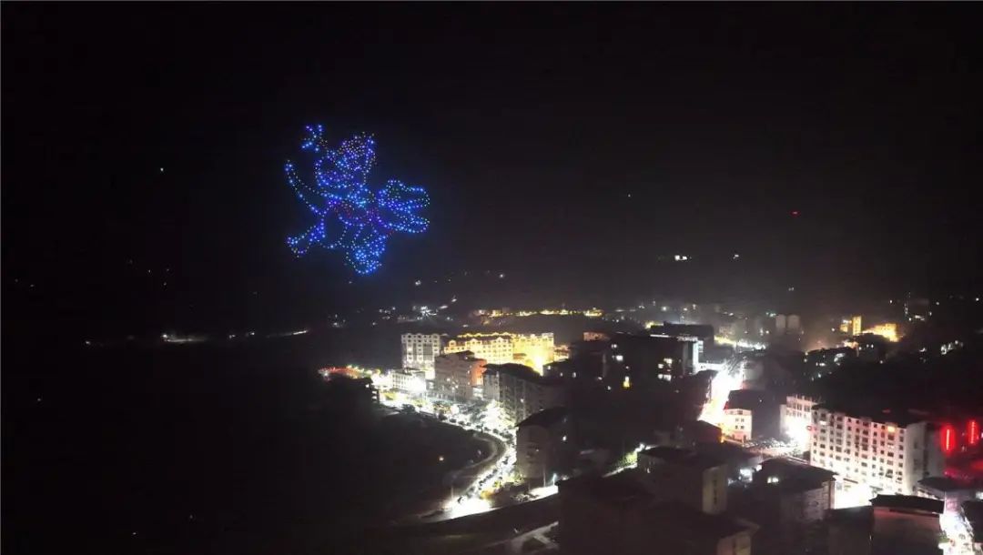 此次無人機表演安排了14組精美絕倫的造型,整場表演持續了10多分鐘,同時還融入了云陽特色元素,與春晚的熱鬧場景相得益彰,展示了獨特的魅力。