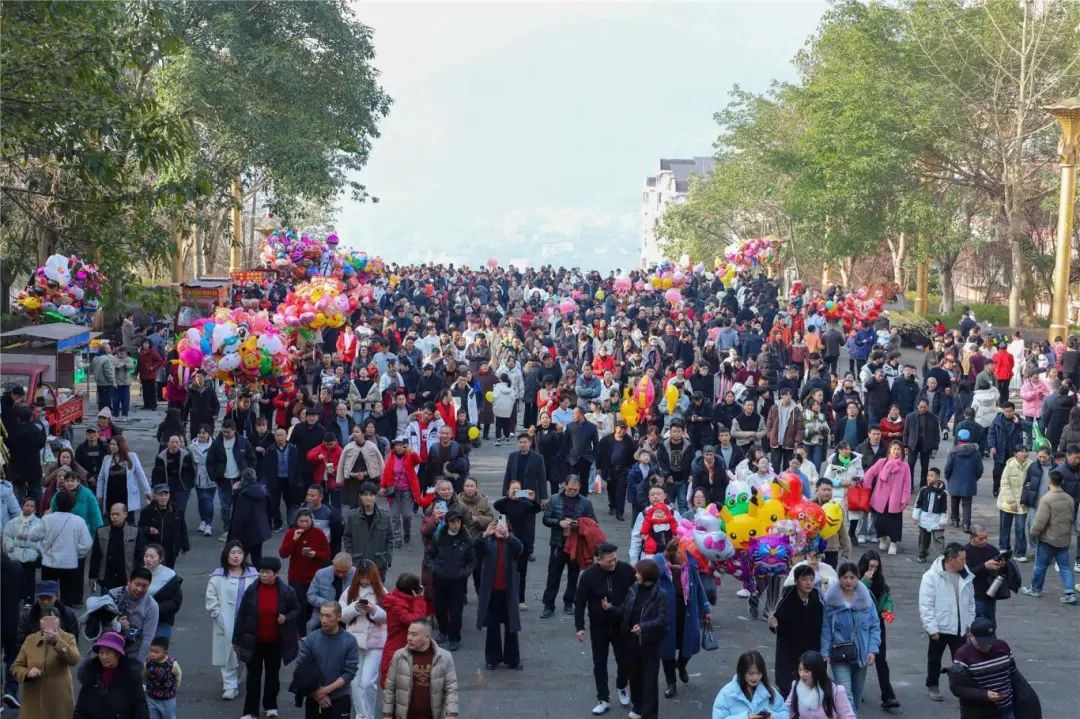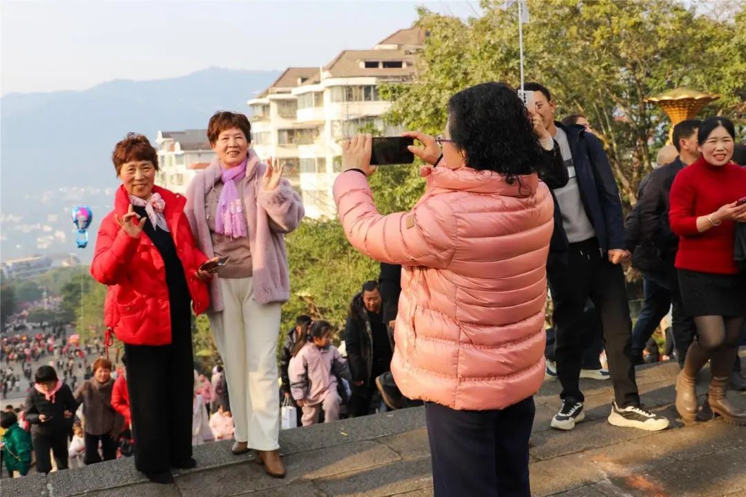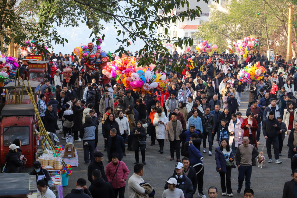 數(shù)萬市民和游客登高望遠(yuǎn)、喜迎新春