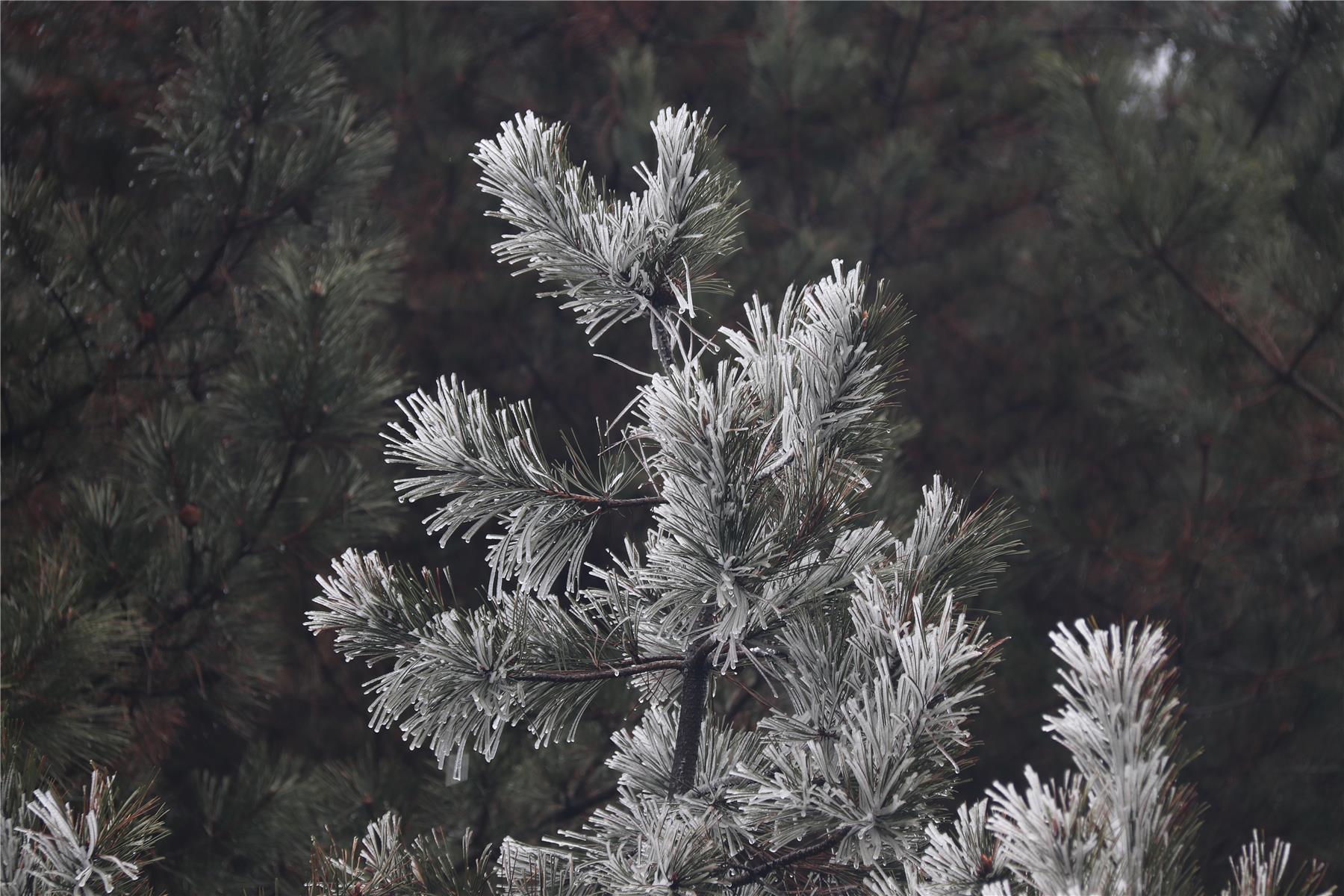經(jīng)過一夜的風吹霧漫,在海拔1700米以上的鑼鼓宕景區(qū),遠遠望去已是一片銀裝素裹。雪白的冰晶附著在漫山遍野的樹枝上,呈現(xiàn)出霧凇景觀,簇簇松針,如銀菊怒放,造型奇特的灌木,如海底珊瑚,將整個山巔妝點得如同一幅水墨山水畫。不少的游客紛至沓來,拍照賞景。