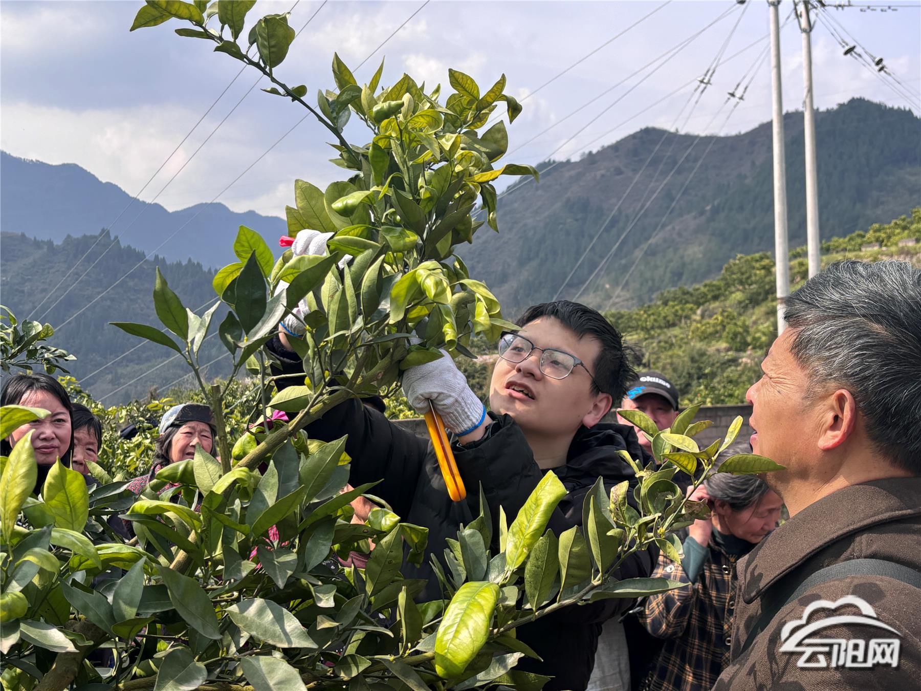 云陽網訊(記者 李妍)“上空下不空,外空內不空,小空大不空。大家要熟記這個口訣方便之后運用。”近日,在龍角鎮軍家村奉云江玲柑橘種植園里,一場別開生面的新農人柑橘修剪技能提升培訓正在進行,縣農業科技信息中心培訓教師為當地果農送上了一份實用的“技能禮包”。