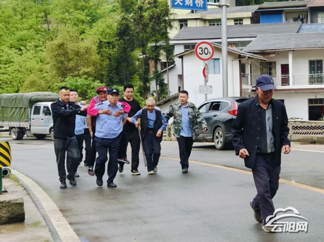 演練前,鄉政府組織群眾召開院壩會議,通過案例分析、情景模擬等方式,向村民詳細講解演練的必要性,此次演練模擬因持續強降雨引發山體裂縫擴大,存在滑坡險情。隨著警報響起,鄉村干部、應急隊伍迅速完成集結。演練中,地災點獨居的78歲饒奶奶因腿腳不便無法撤離,民警胡世全立即蹲身將其背起,一路小跑轉移至安全區;另一名拄拐的李大爺因緊張步履踉蹌,兩名應急干部一左一右攙扶其撤離,李大爺感動道:“我這把老骨頭拖后腿了,多虧你們來幫忙!”在各方協作下,8戶19名村民僅用8分鐘全部抵達安全區,全程緊張有序。