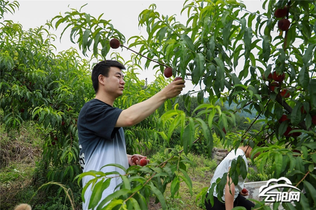 云陽網訊(記者 吳迎花)時下正值桃子成熟佳期,江口鎮火地村100余畝桃園宛如一片歡樂的海洋,紅彤彤的桃子壓滿枝頭,滿園桃香四溢,吸引著眾多游客紛至沓來,共享這場甜蜜的豐收盛宴。