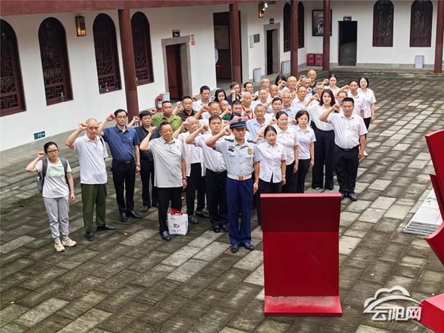 座談結(jié)束后,全體黨員統(tǒng)一乘車前往彭詠梧紀(jì)念館開(kāi)展紅色教育實(shí)踐活動(dòng)。在莊嚴(yán)肅穆的紀(jì)念館內(nèi),黨員們跟隨講解員的步伐,駐足凝視珍貴歷史照片、文獻(xiàn)資料和革命文物,聆聽(tīng)彭詠梧烈士投身革命、浴血奮戰(zhàn)的光輝事跡,深刻感悟老一輩革命家對(duì)黨忠誠(chéng)、無(wú)私奉獻(xiàn)的崇高精神。面對(duì)鮮紅的黨旗,全體黨員高舉右拳,齊聲重溫入黨誓詞:“我志愿加入中國(guó)共產(chǎn)黨……隨時(shí)準(zhǔn)備為黨和人民犧牲一切,永不叛黨!”鏗鏘有力的誓言響徹大廳,激蕩著每一位黨員的初心與使命。